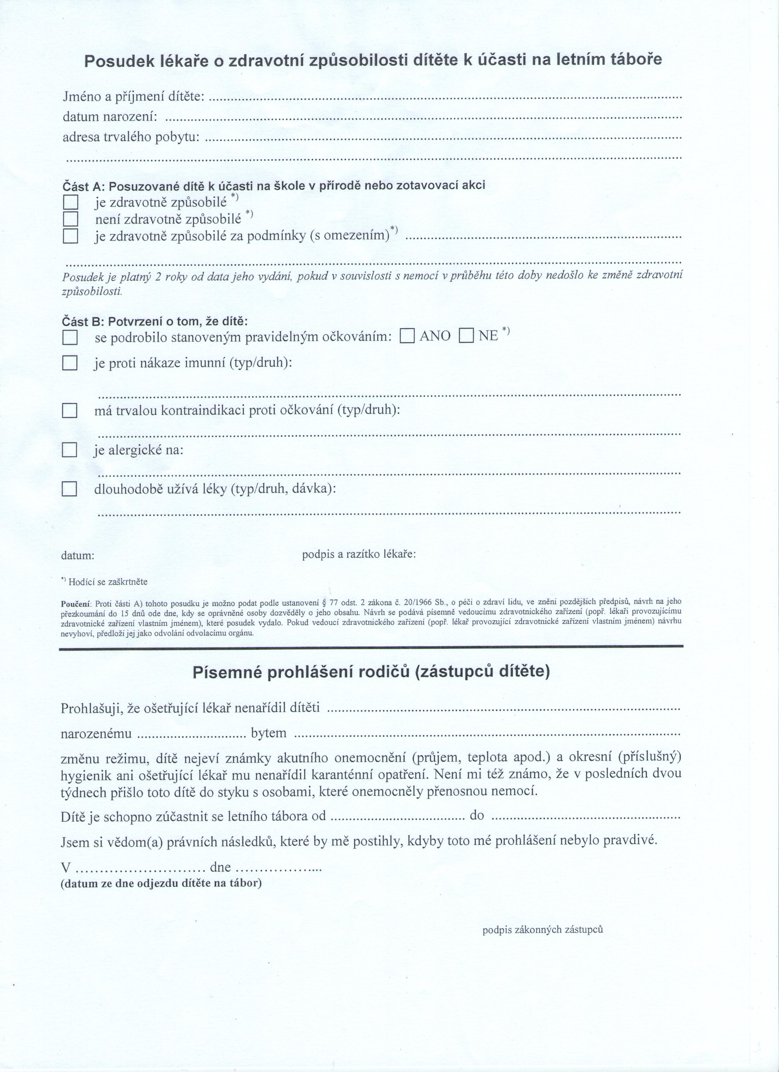Posudek o zdravotní způsobilosti 2022 ke stažení zde