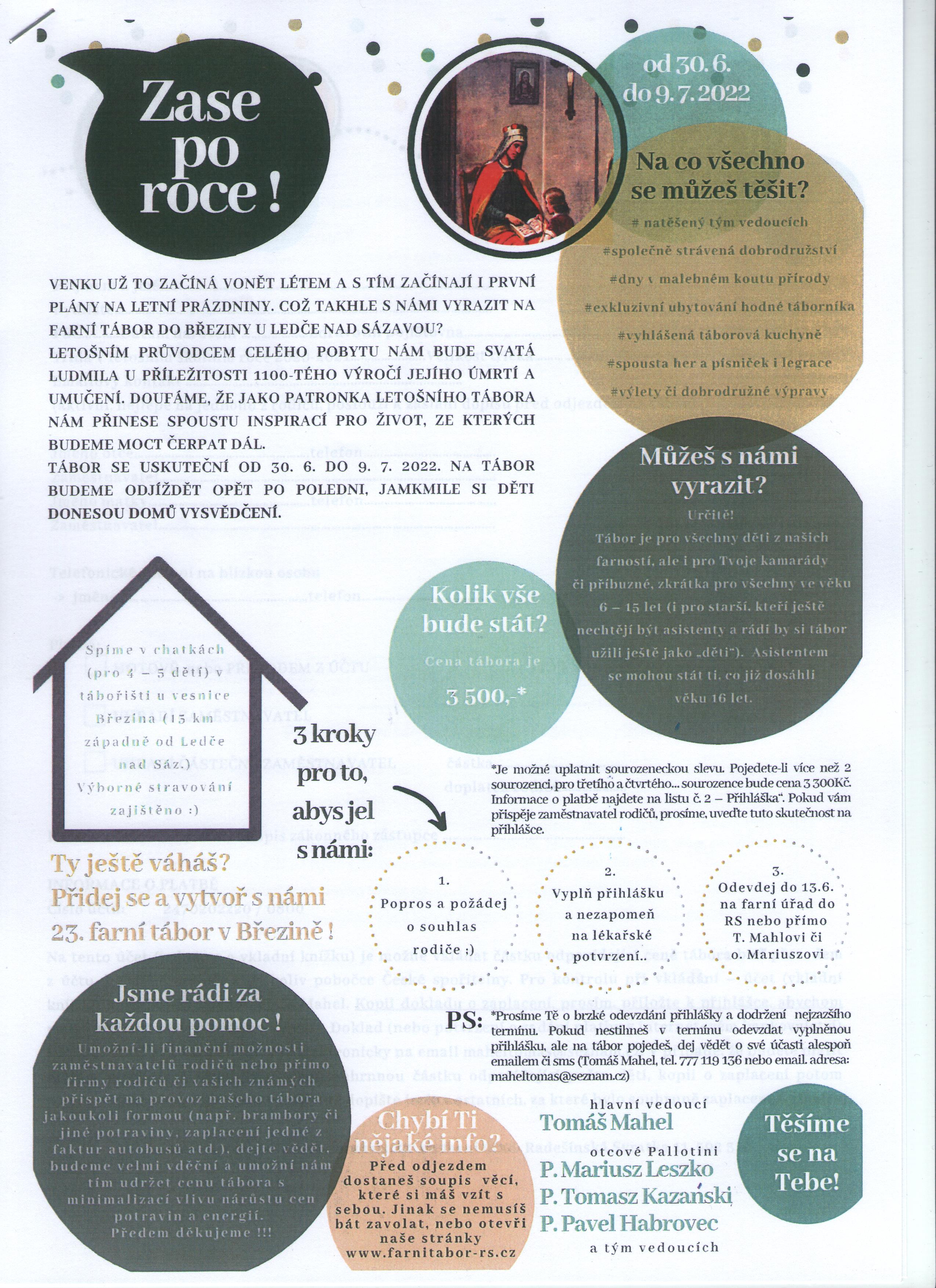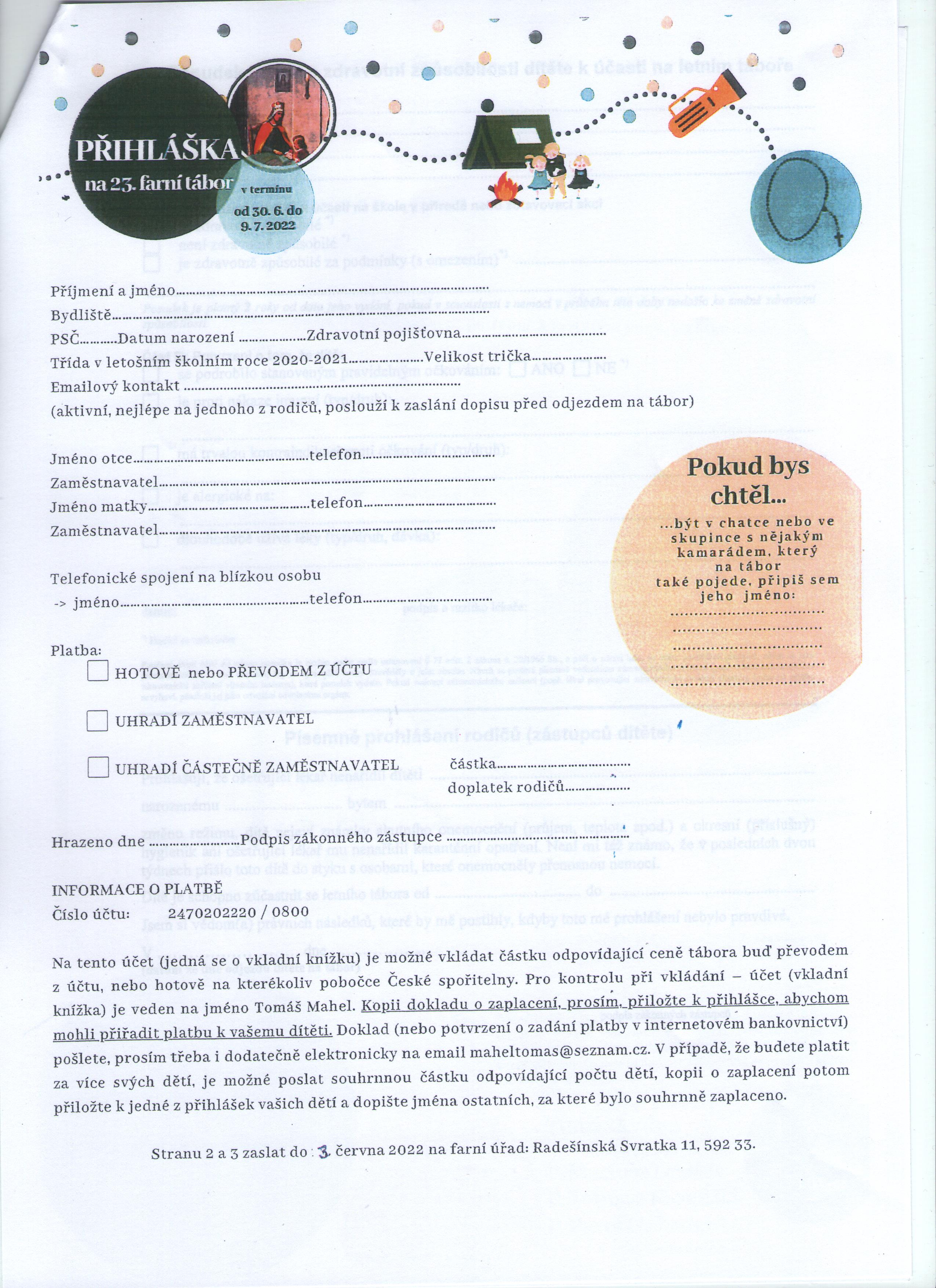 Přihláška na 23. farní tábor Březina 2022 ke stažení zde