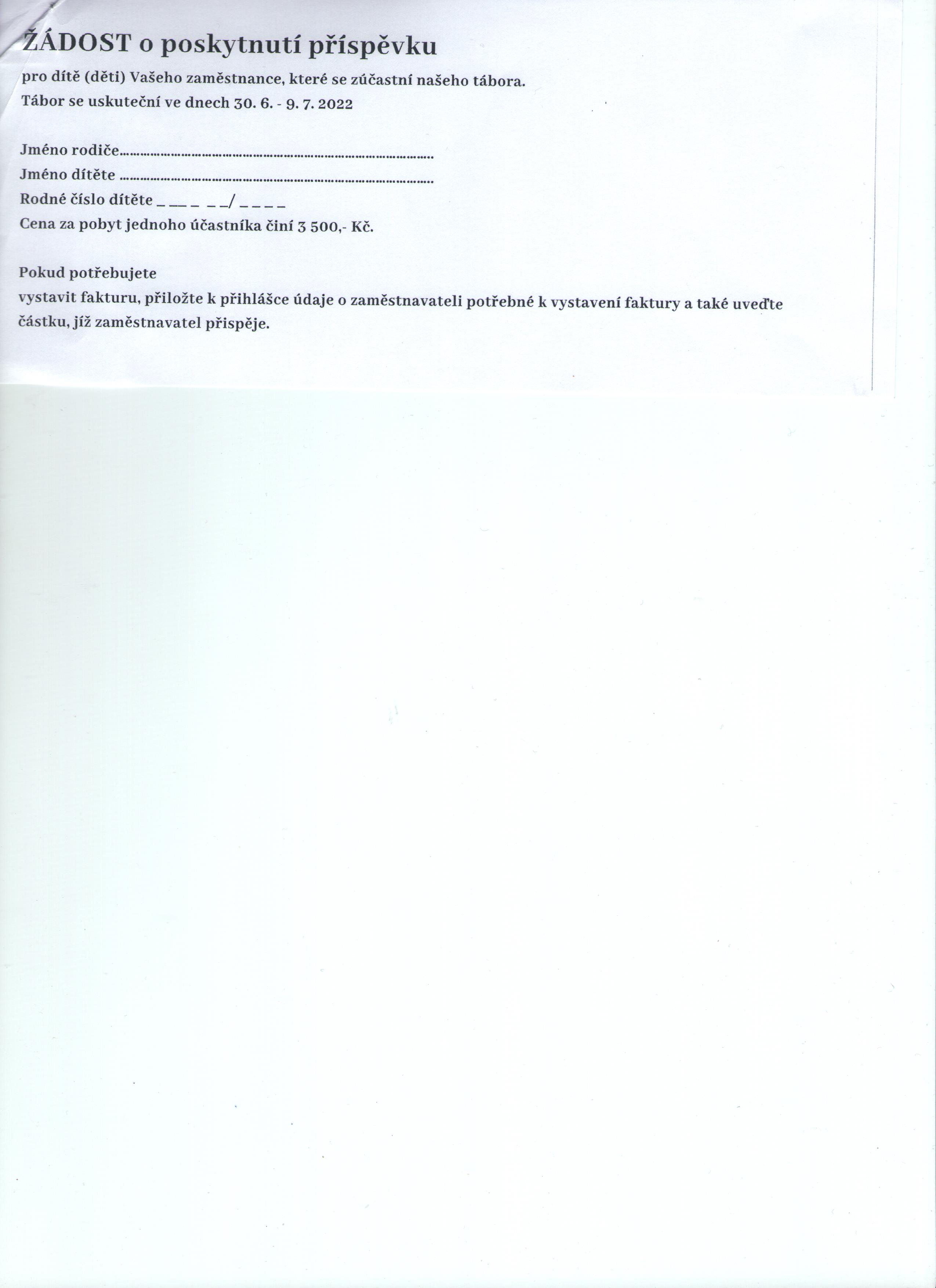 Žádost na zaměstnavatele o poskytnutí příspěvku 2022 ke stažení zde